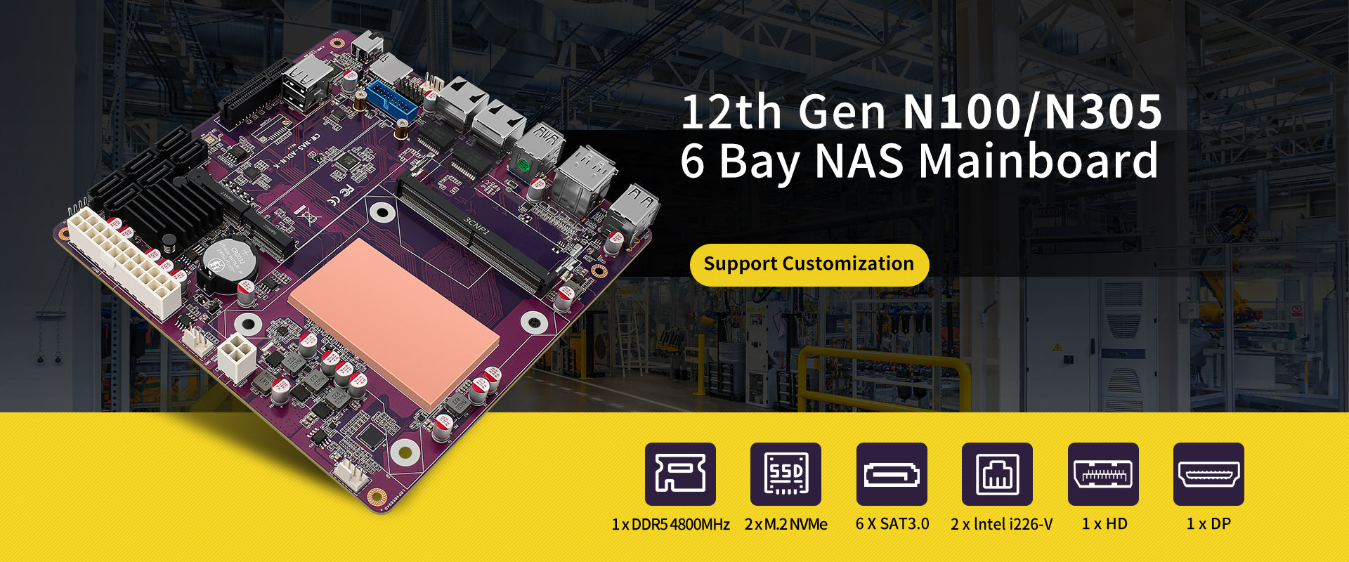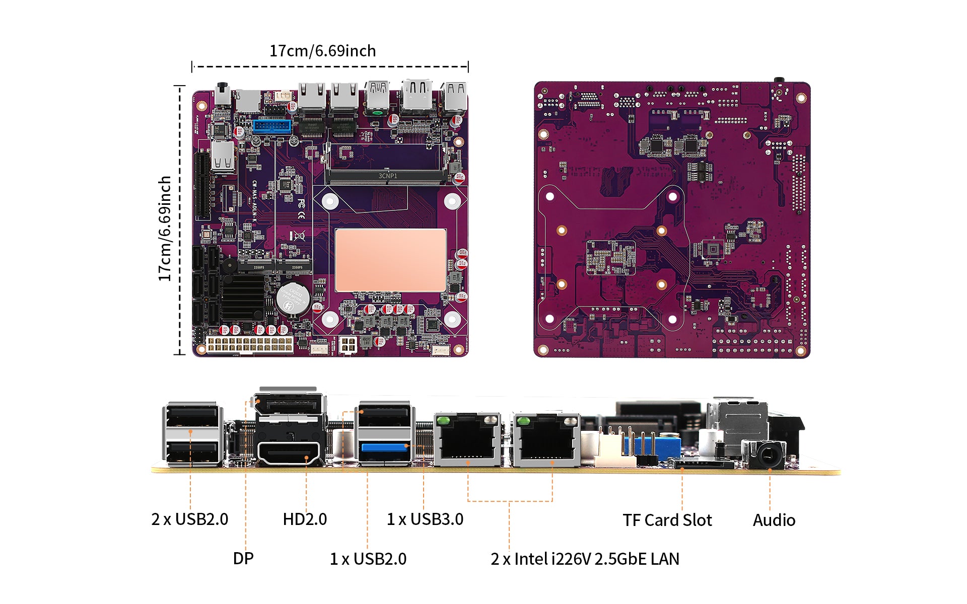 CWWK S13 N100 NAS Mainboard 6 Bay, 2 x i226-V 2.5GbE LAN Mini ITX Motherboard with 6× SATA3.0, DDR5 Computer motherboards with 2x M.2 NVMe, DDR5 RAM SSD, TF Card Slot, PCIE x4, Purple