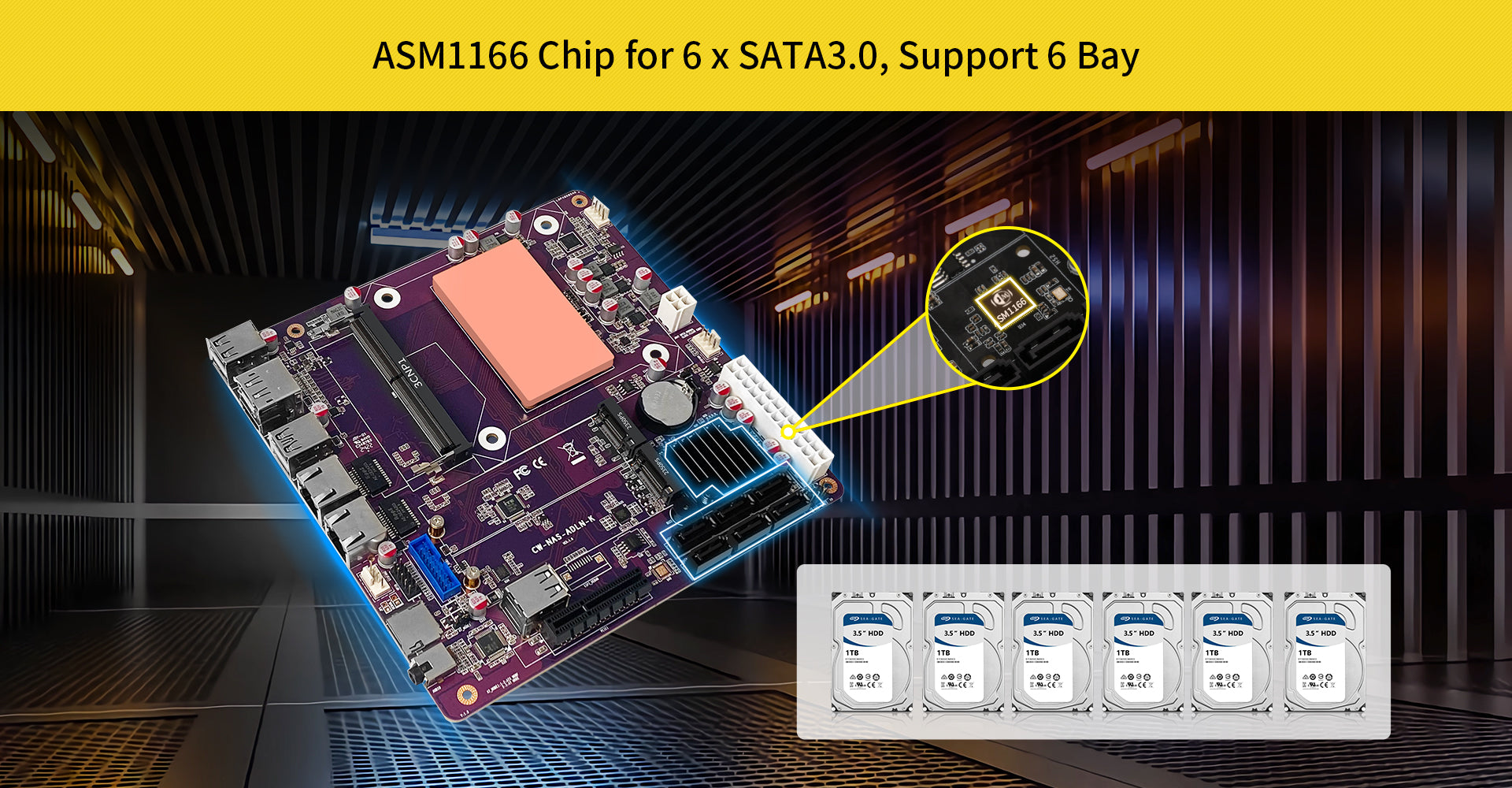 Storage Expand: 2 x M.2 2280 NVME SSD slot, 6 x SATA3.0(6.0Gb/s) for SSD/HDD