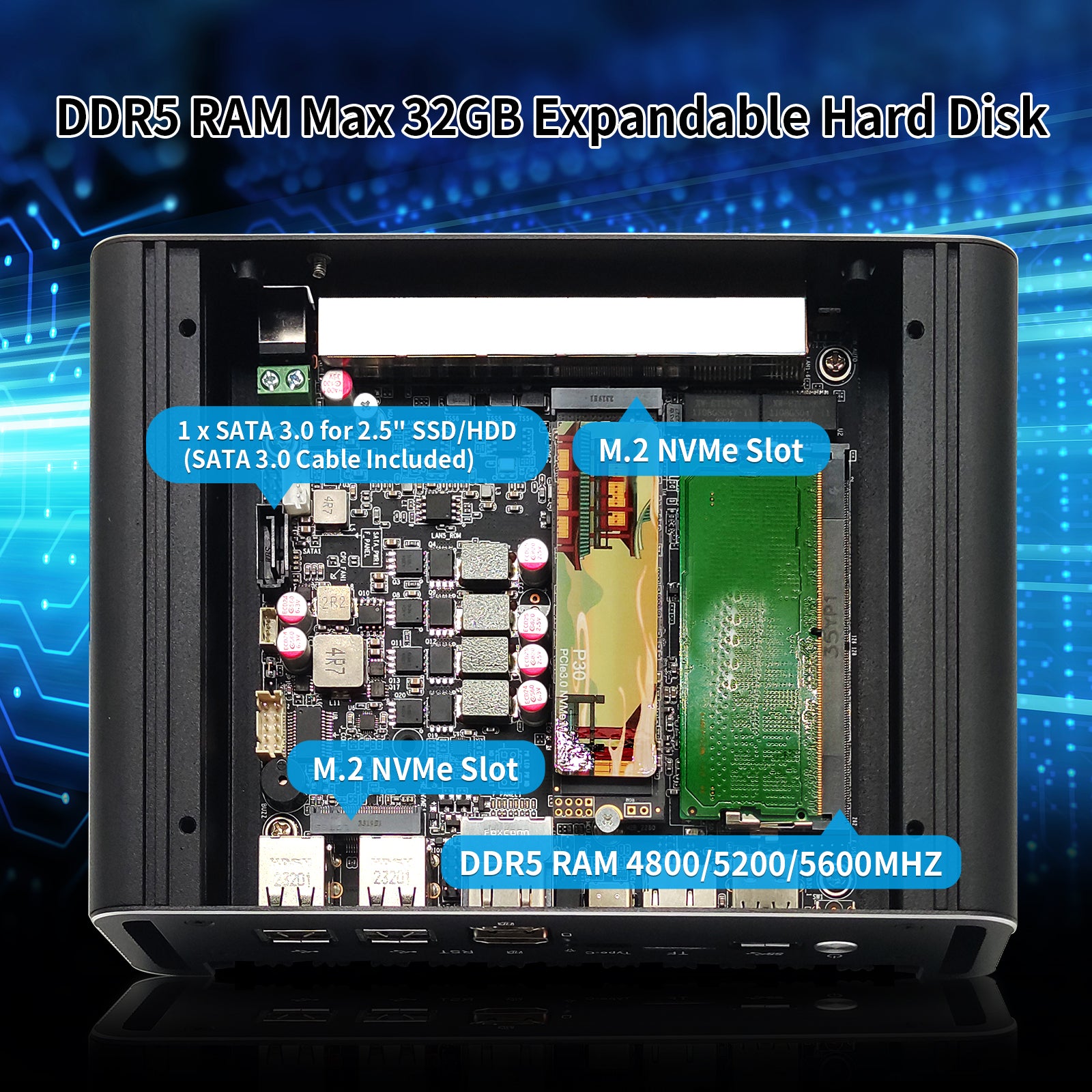 - AI401 N305 Firewall appliance with 1 x DDR5 SO-DIMM memory 4800MHz compatible with 5200/5600MHz, 2 x M.2 NVMe slot and 1 x SATA3.0 for 2.5" SSD/HDD