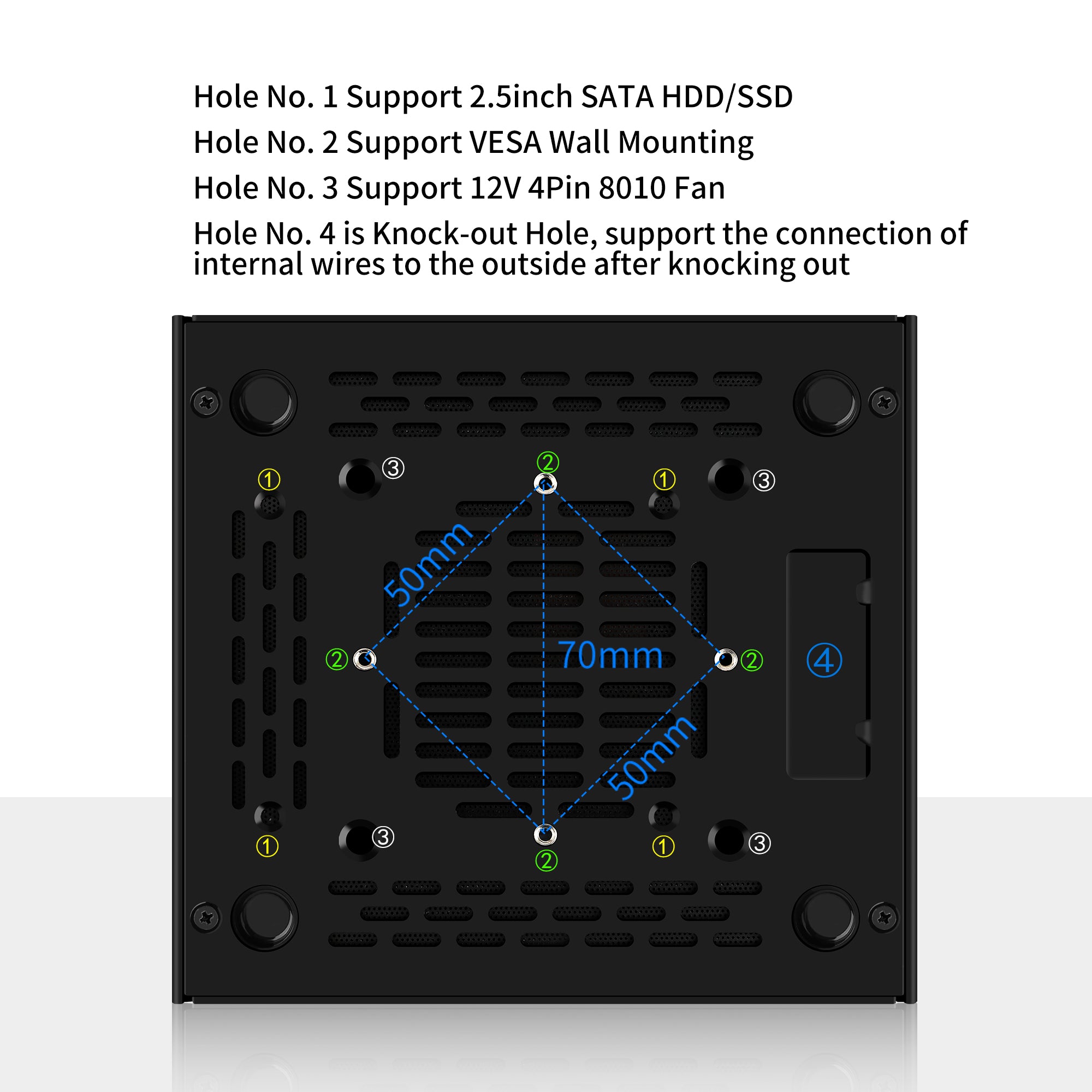 Chassis: Aluminum with knockout hole, wiring the cables to the external